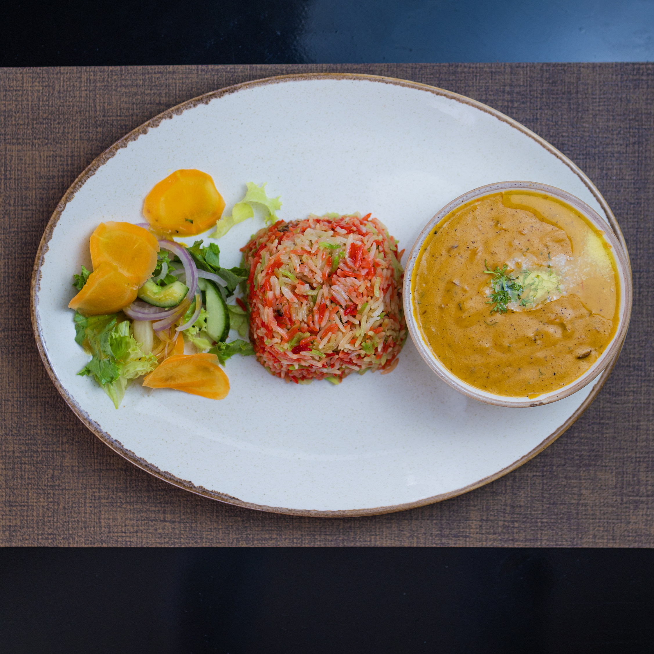 Served with rice, mash potato, chips, salad or chapati.